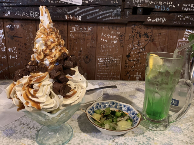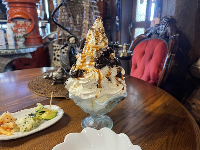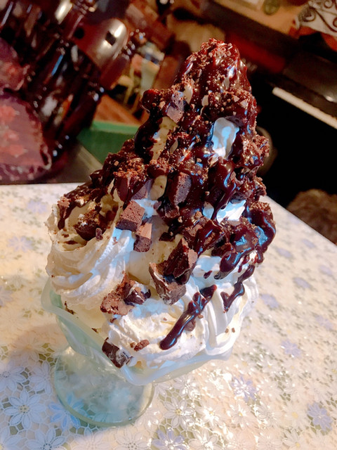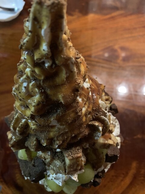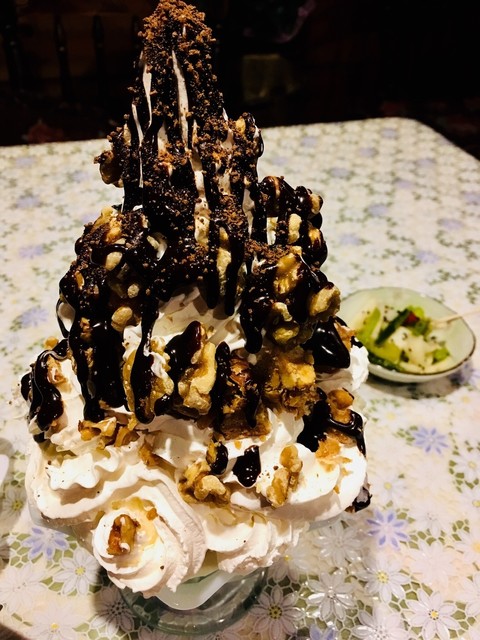當運送到桌上的瞬間,看到它的大小讓我驚訝不已!焦糖和巧克力的香氣輕輕散開,光是看著就讓人感到興奮的聖代♡