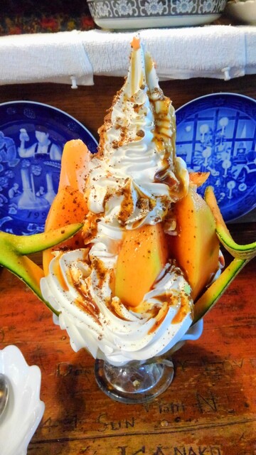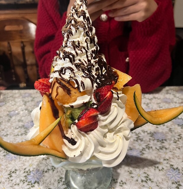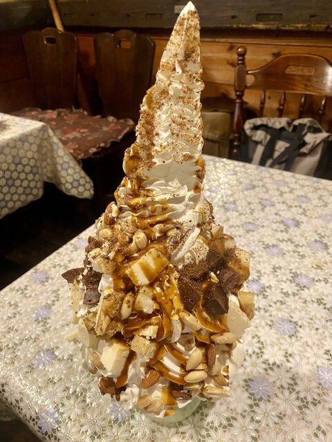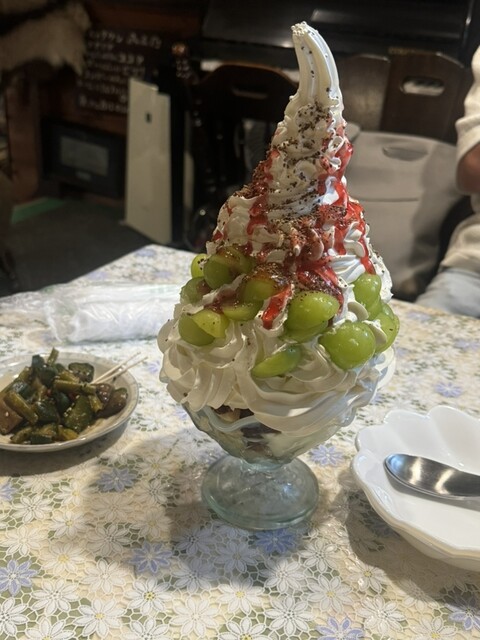 在47年的演變中,味道始終如一,依然美味♡自從學生時期以來,距離上次與另一半一起來已經過了30多年。我點了一份當季新鮮的光之瑪斯喀特甜筒♡當另一半也想點一份時,他建議道:"因為分量很大,不如只增加自己...