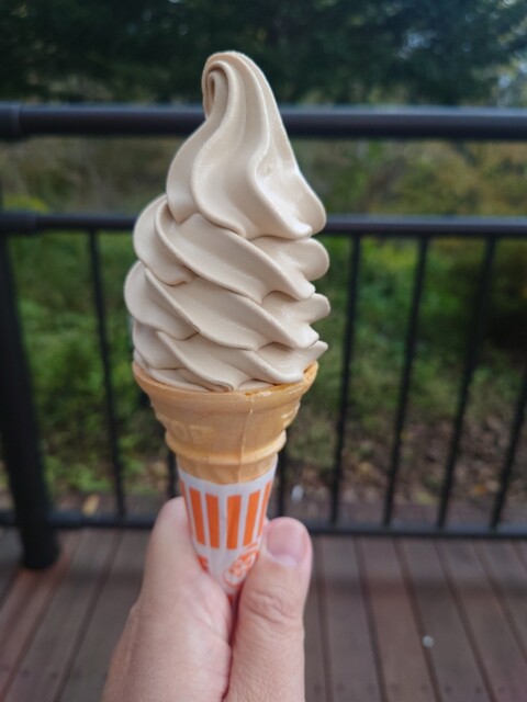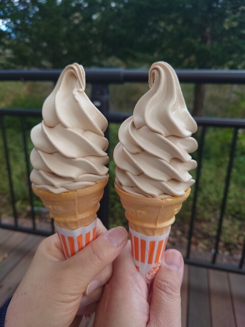 來到輕井澤時一定會光顧的超市—鶴屋裡面有這家店。我原以為輕井澤是總店,結果發現東京才是總店。摩卡冰淇淋可以選擇杯裝或圓筒,但因為會附上美味的梅子醬,所以我推薦選擇杯裝。我還點了今天的咖啡,430日圓。
