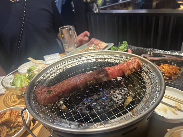 這是一家受高爾夫愛好者喜愛的燒肉店,店內掛滿了著名韓國女高爾夫球手的簽名。店裡的服務人員和許多外國客人互動非常流暢,能迅速回答「辣椒醬在哪裡」、「我想要取菜盤」等需求。果然因為這裡沒有海,肉店很多,所...
