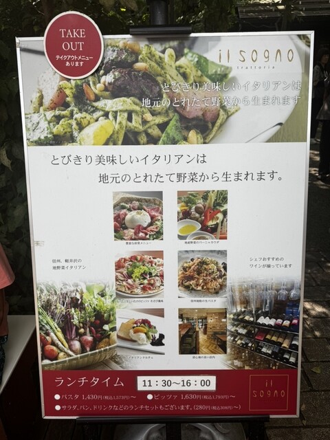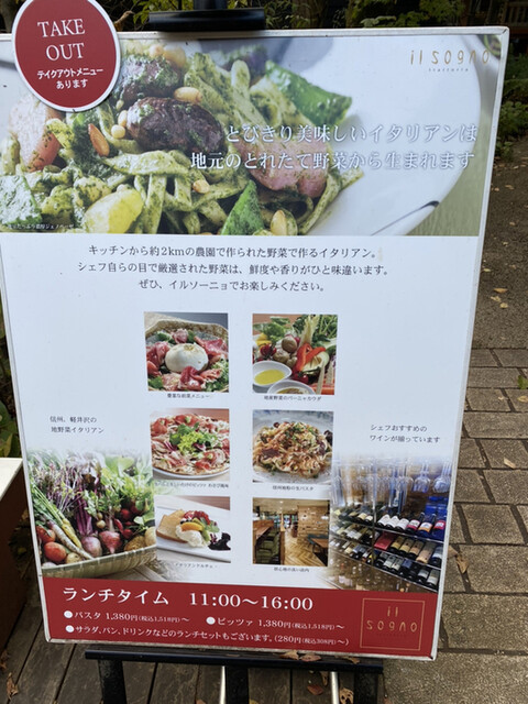 位於當地輕井澤的意大利料理店「イル・ソーニョ」,使用當地採摘的有機蔬菜和應季食材。被綠意盎然的自然環繞,您可以享受精選的葡萄酒和四季變化的美味佳餚。我們也歡迎您在派對或婚禮的二次聚會中光臨。...