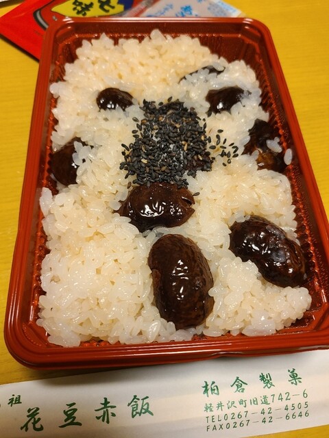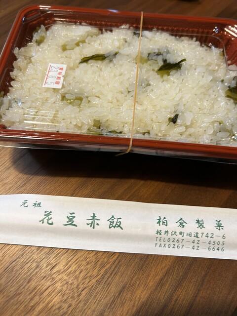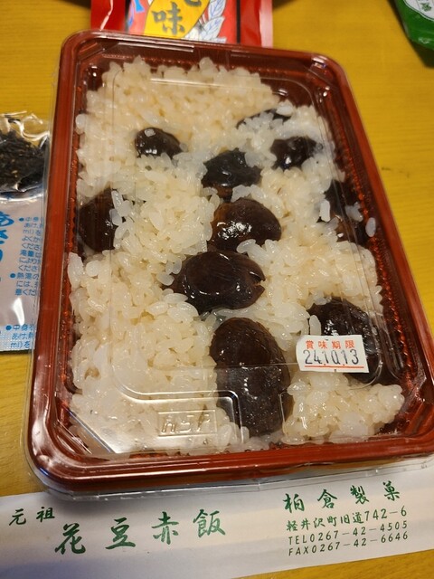 輕井澤町的旅行。我在舊輕井澤的柏倉製菓購買了花豆赤飯來品嚐。其煮製方式非常出色。花豆帶有淡淡的甜味,和芝麻鹽搭配是必不可少的。我也買了竹風堂的栗子飯,但柏倉製菓的栗子飯已經售罄。下次一定要再來挑戰一下...