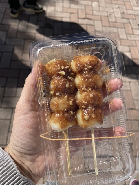 發現大家都在排隊柏倉製菓,所以我買了胡桃團子和其他的甜點。胡桃非常美味而且價格實惠!一根只要100日圓。