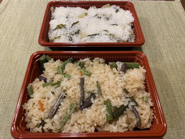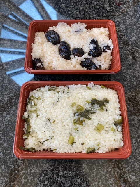 我品嚐了野澤菜的糯米飯、花豆紅豆飯和蜜汁團子。