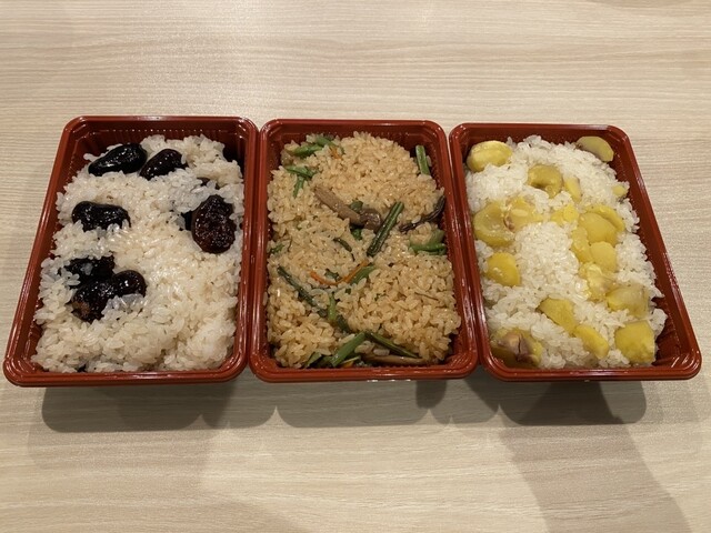 我品嚐了山菜飯、花豆飯和栗子飯。