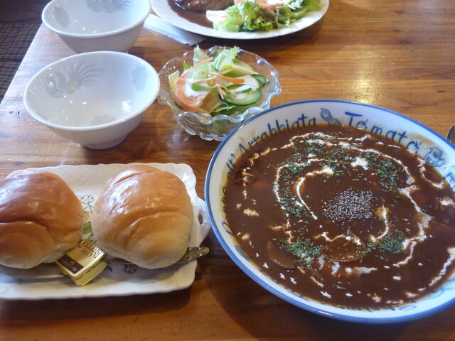 ビーフシチューセットについてくるサラダとスープ(by 白田よろず)