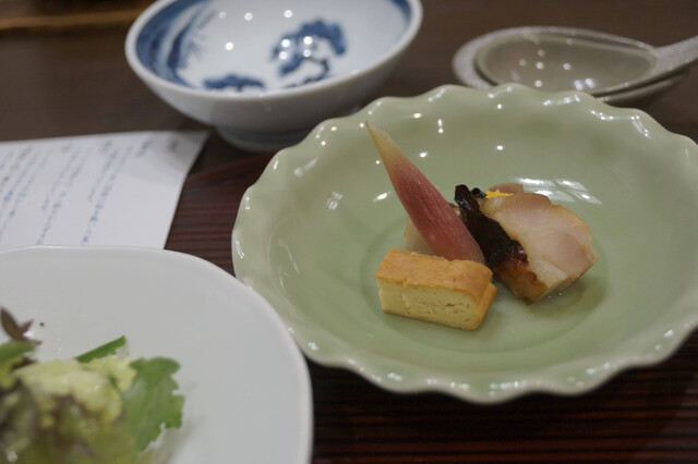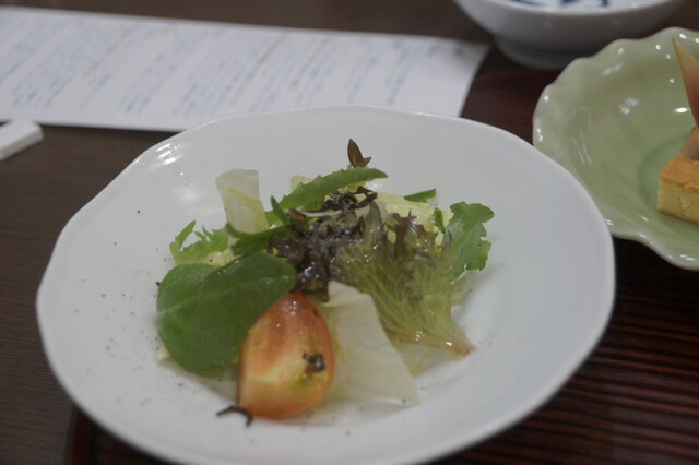 お椀はコーンスープ…というには上品すぎるとうもろこしのスープに粟のお麩が入っていて、もちもちした食感ととうもろこしの甘さが食欲をそそります。