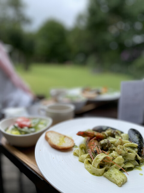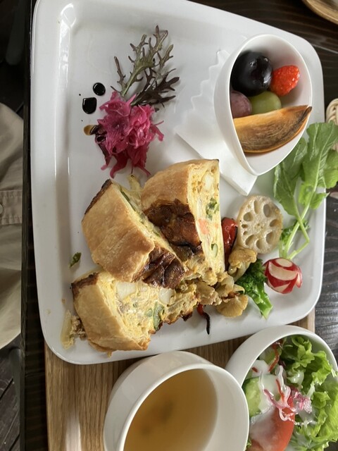 享受完ルヴァン美術館後,我悠閒地在咖啡館度過了一段時光。稍微欣賞了一下紅葉,並感受到了一絲涼意,享用了火腿起司餡餅的午餐。我點了玫瑰花茶,但卻端上了紅茶,雖然有些驚訝,但既然在輕井澤,便隨意享用。整體...
