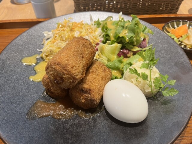 漢堡排非常美味,肉質多汁,醬汁的味道是我第一次品嚐到的美味~。不過份量有點多,建議調整一下早餐的份量。哈哈!朋友給我的蟹肉奶油可樂餅也非常好吃。