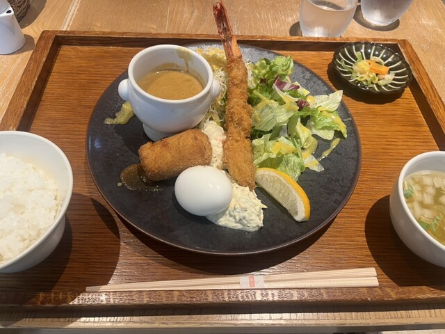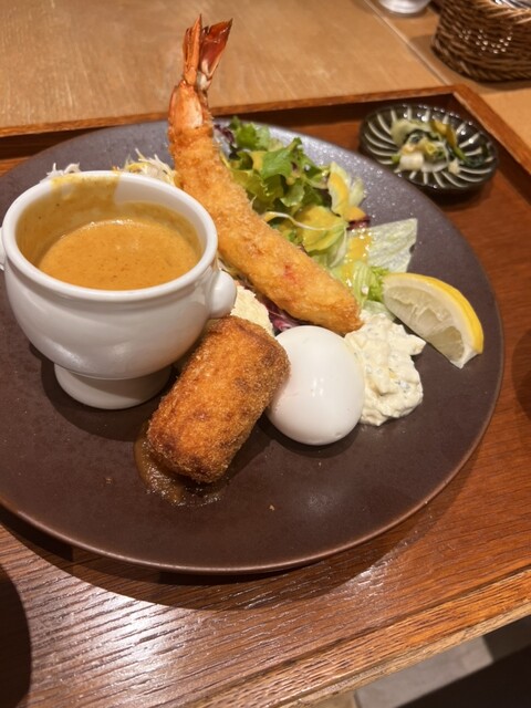 點了一份附有蝦炸的西式套餐,份量十足,能品嚐到各種不同的美味,這正是它的魅力所在。