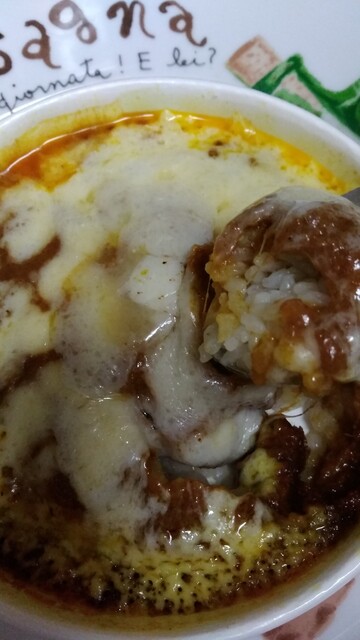 烤咖哩飯在500瓦微波爐加熱約6分鐘。(by ritenms)