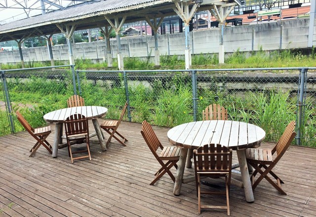 旧ホームに作られたテラス席(by 美肌ちゃん)