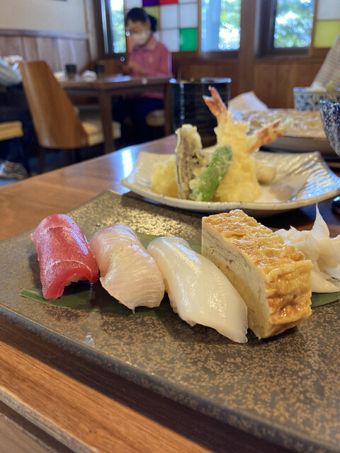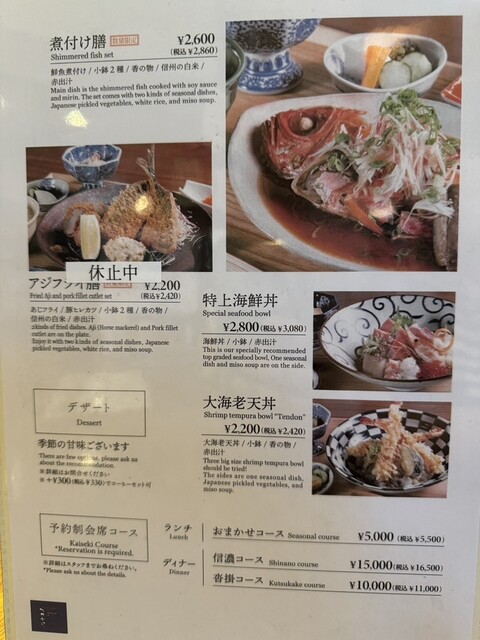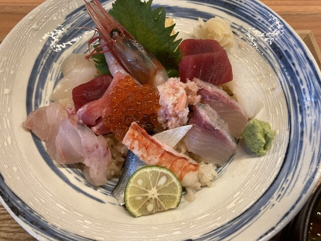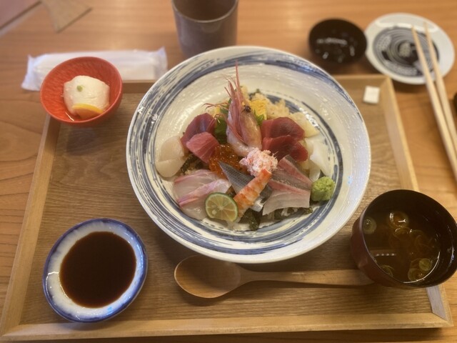 當我想在軽井沢吃魚(特別是生魚片)時,我就決定來這家店!很久沒有預訂週末的午餐了,這次終於來到這裡。因為預訂了吧檯的座位,能在眼前觀看廚師的料理過程,等待的時間也變得愉快。當然,我點的海鮮丼和味噌湯本...