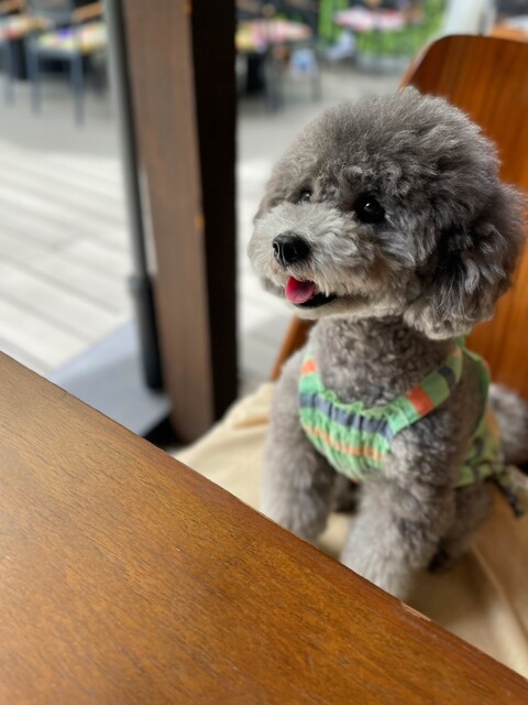 陽台座位允許攜帶寵物狗,因此有許多狗狗主人光顧。(我們也是其中的一組,笑)
