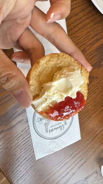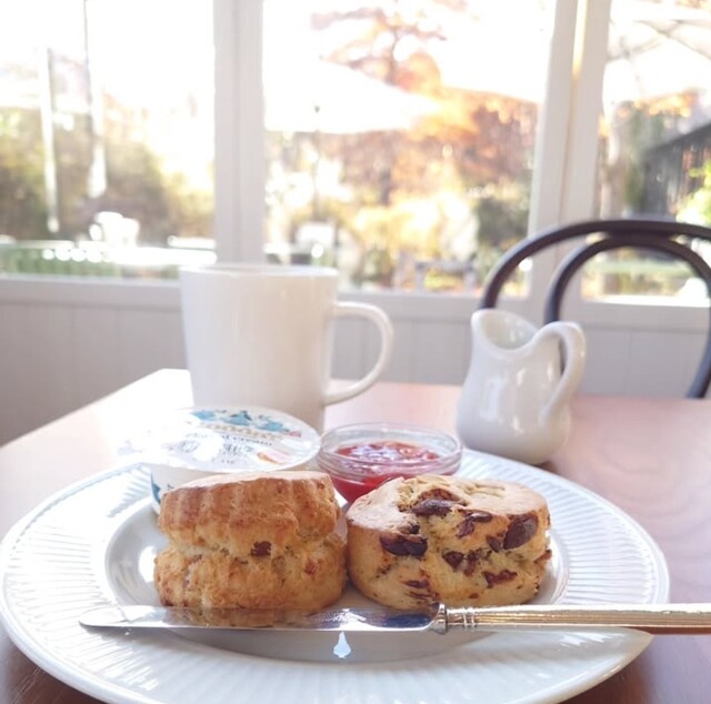 喜愛司康的兒子把濃厚的奶油和果醬都塗得滿滿的,無論是原味還是伯爵茶口味,都非常美味♡