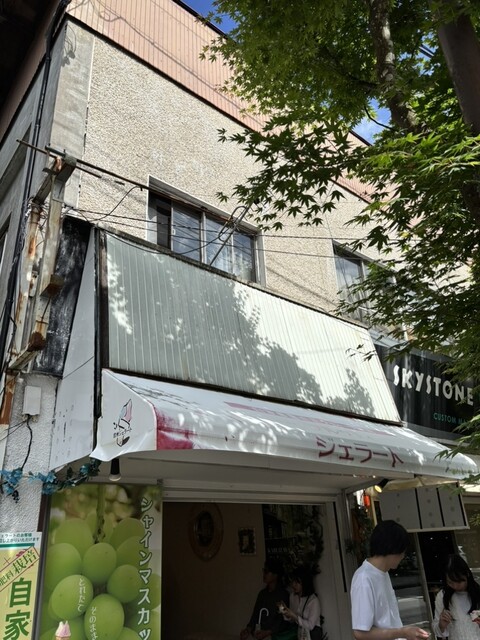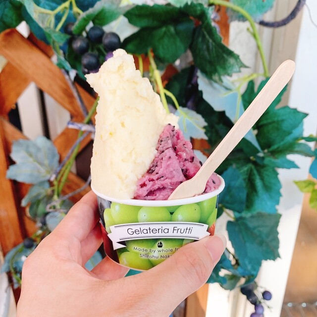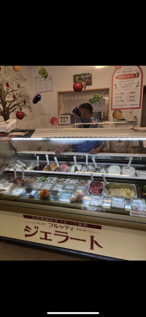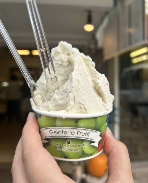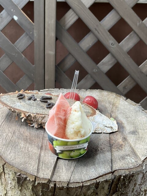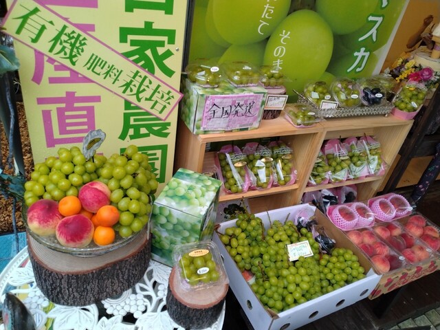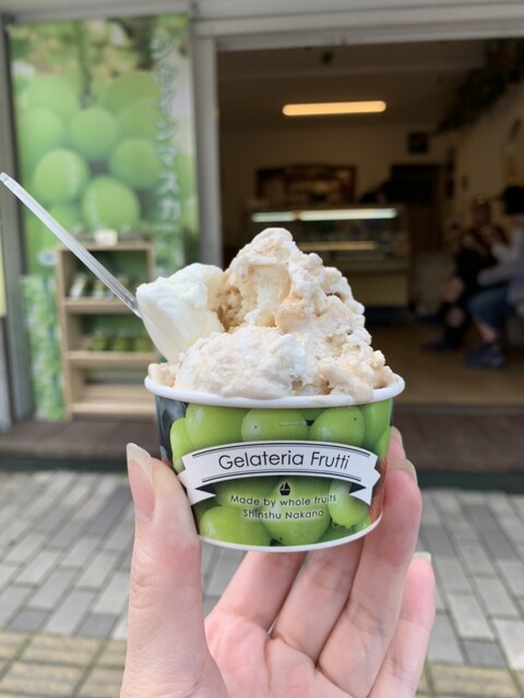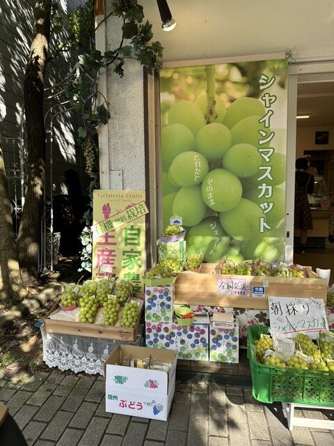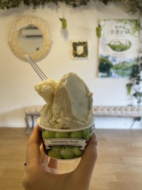 位於舊輕井澤的果樹農場經營的冰淇淋店。當天早上新鮮採摘的晴瑪斯卡特葡萄在店內排開,店內的鮮美感十分吸引人。