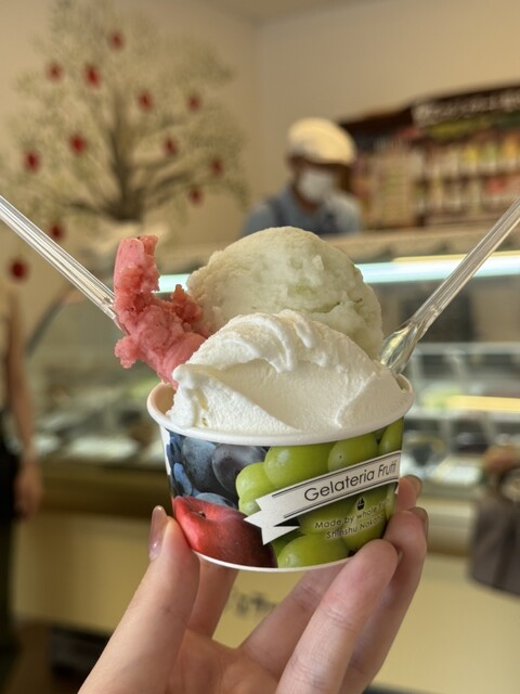 冰淇淋的概念會徹底改變。我品嚐了長野紫葡萄和信濃黃金,口感就像是在品嚐整顆水果,味道濃縮的奢華。這是我吃過的冰淇淋中最為美味的一款。每次來到輕井澤時,我都一定要來品嘗,如果附近有這家店,我一定會全年光顧!