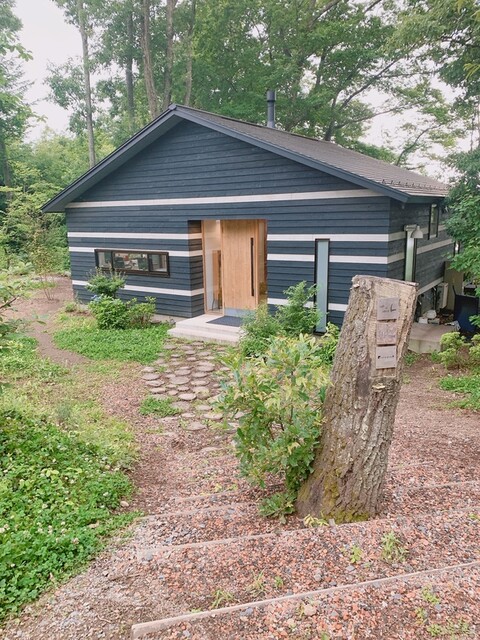 此咖啡廳位於御代田的山中,周圍並不是市中心,而是一片廣大的農田。入口處有一個小招牌。