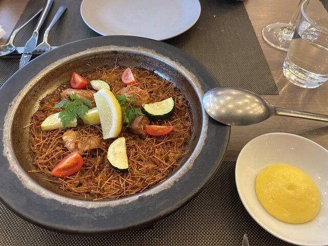 我們預訂了標準午餐套餐(ESTÁNDAR)。被帶到兩人桌,期待在這安靜的氛圍中開始的西班牙料理套餐。