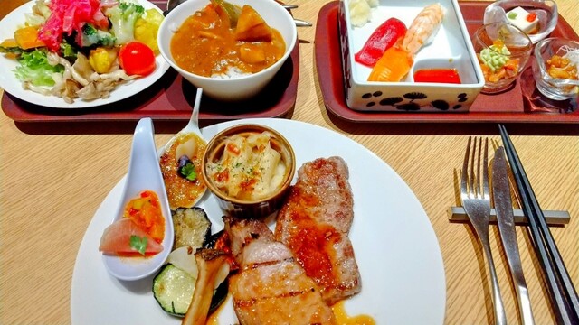 我在酒店住宿,晚上利用這裡的晚餐自助餐。和式、西式、中式以及甜點,種類非常多,每一道都非常美味!雖然價格偏高,但絕對值得。