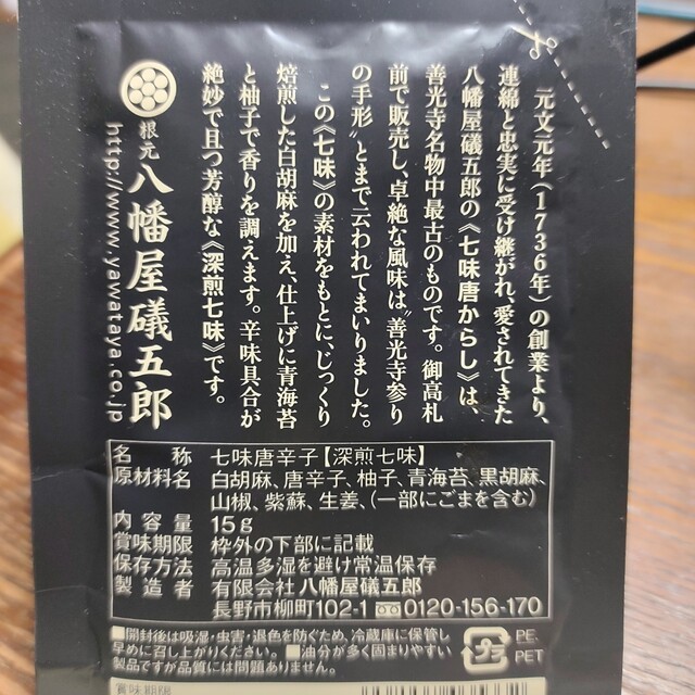 我家從小就使用的七味,是在「八幡屋礒五郎」善光寺下的本店特別調配的。
