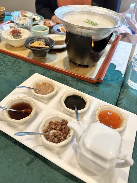 粥本身就很好吃,但可以用自製的六種調味料來變換口味。