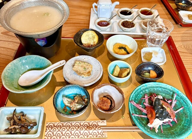 從野草茶開始,擺上了10種小碗的粥套餐p(´∇`)q