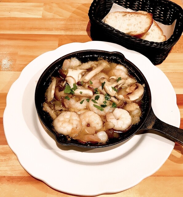 小蝦仁與蘑菇的蒜香橄欖油(by 餐廳)
