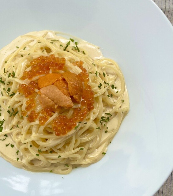 海膽與鮭魚卵奶油義大利麵(by 餐廳)