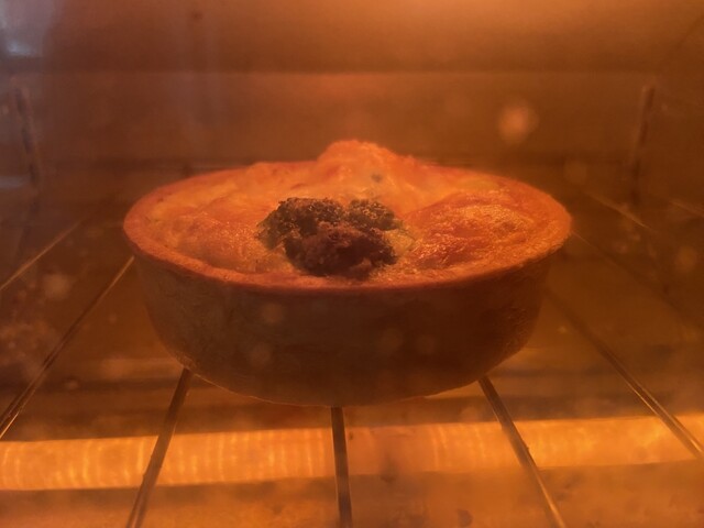 微波加熱後正在烤箱中重新烘烤(by 84304d)