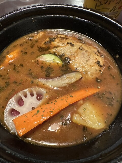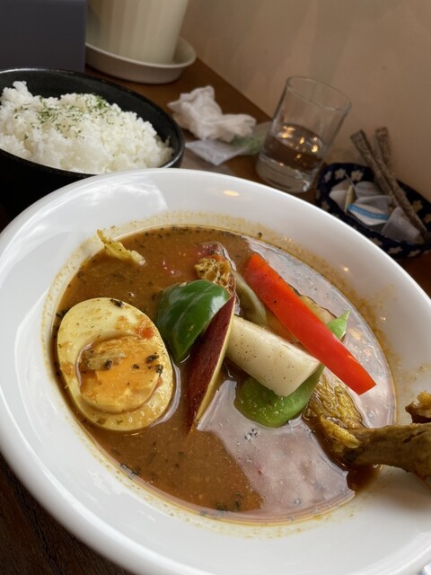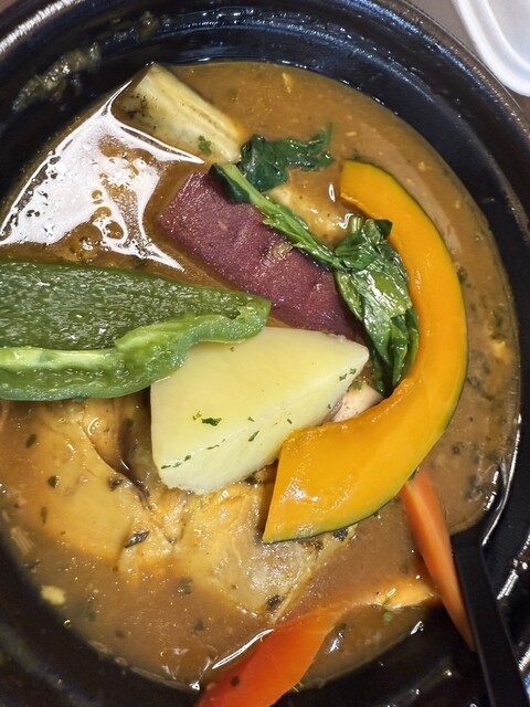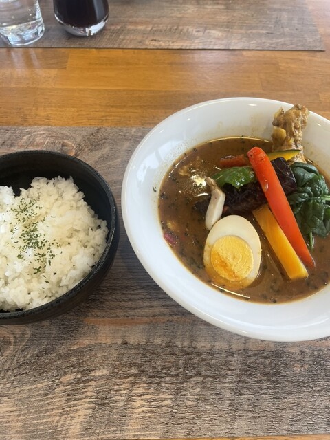 輕井澤有很多地方可以享用午餐,但今天天氣寒冷,我想吃熱的湯咖哩!於是我大約在11點入店。午餐菜單上有湯咖哩的清淡和豐富兩種選擇。還有牛肉咖哩和限量焗咖哩(5份)。我點的10種蔬菜咖哩份量十足。即使米飯...