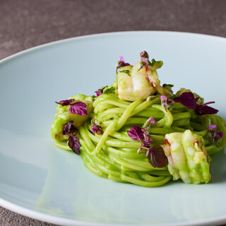 菜單 ・當季信州沙拉拼盤 湯品 ・今日的湯品 義大利麵 章魚與馬鈴薯的青醬 或 黑胡椒紅酒肉醬 主菜 奧利維亞豬排 搭配藍紋起司與香蕉 或 信州鮭魚的微熟 搭配水田芥菜醬 甜點與咖啡 三種甜點拼盤 咖啡或紅茶、香草茶 |