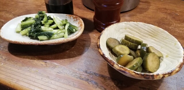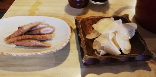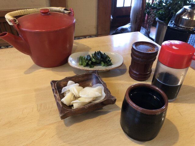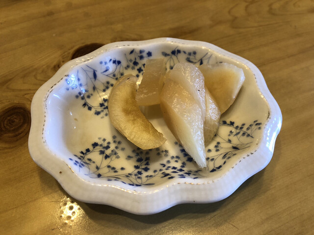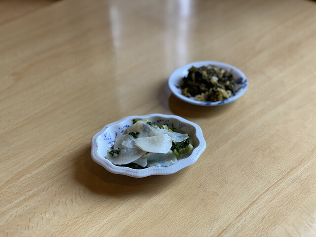 首先上了冰水、筍燉菜和醃菜。