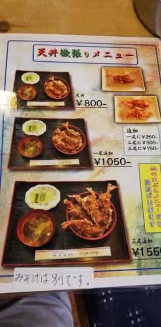 雖然建議點炸蝦天麩羅丼,但菜單上沒有。