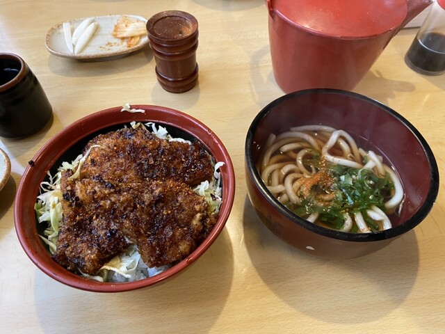 我點了炸豬排蓋飯。淋上的醬汁偏甜,吃到一半有點膩,但最終還是吃完了。我的朋友點了炸蝦蓋飯,端上來的時候是非常大的炸蝦,沒辦法完全放進碗裡。不過,他還是把它吃完了。味道方面,炸豬排蓋飯和炸蝦蓋飯都算普普通通。
