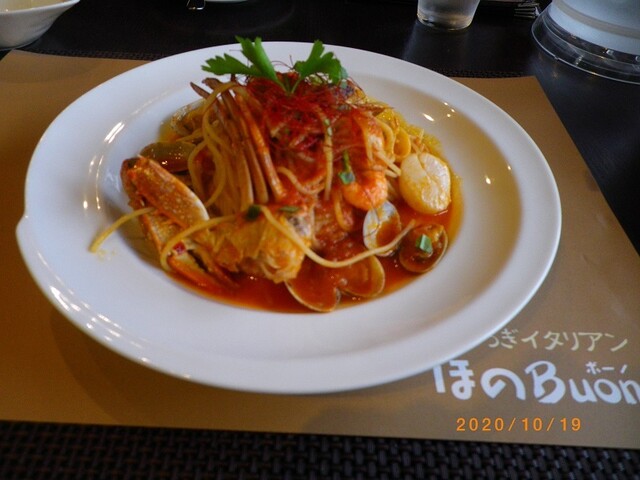友人和家人可以悠閒享用美食的「舒適義大利餐廳 ほのBuono」。這裡擁有罕見的兒童遊戲區,還提供嬰兒搖籃、坐墊和豐富的兒童菜單,對爸爸媽媽非常友好!當然,女子聚會或與好友的餐會也非常受歡迎!推薦的義大利麵是鮮嫩的海蝦和扇貝搭配番茄奶油醬,海鮮的鮮美與奶油番茄醬的絕妙結合,使這道菜成為回頭客的最愛!自家製的比薩餅根據麵團的厚度調整粉的配比,並在高溫下快速烘烤,外酥內軟,口感極佳。超值的午餐套餐只需加...180日圓即可享用主菜、沙拉和飲品;加280日圓則可享用沙拉、飲品和甜點;加580日圓則可享用當日前菜、飲品和甜點。晚上的隨意晚餐套餐價格從2500日圓起,無限暢飲的酒精飲品只需1500日圓(男性為2000日圓)。歡迎隨時光臨!