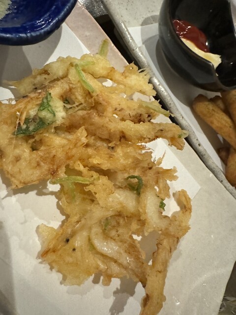 開胃小菜也非常美味。 品嚐到了螢火蝦的煎蛋和白蝦的天婦羅等讓人感受到季節的料理。 雖然沒有飲料無限暢飲,但酒類選擇豐富,日本酒種類繁多且價格實惠!不僅能品嚐到信州的地酒,還能享受到...查看詳情