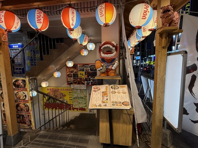 位於那霸主要街道國際通中央的民謠居酒屋。地標是一個巨大的發光招牌和一個帶有三線標誌的風獅爺,標誌著入口。 距离美榮橋 439 米 |