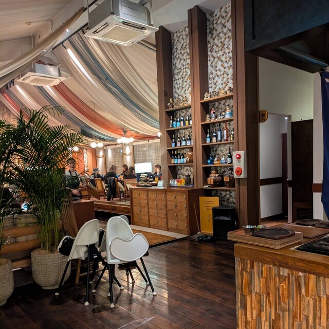 沖繩五感體驗的度假型生活方式「うむさんの庭」。我們設置了炭燒台,提供沖繩產的豬肉、和牛及やんばる雞等新鮮食材,讓您享受現場感十足的美味料理。店內設有開放感十足的戶外露台座位,分別位於一樓和二樓。夜晚還可以在壁爐和沙發旁,享受度假氛圍的炭火燒烤。我們每晚舉辦沖繩民謠等現場表演!在這個非日常的用餐空間中,讓您體驗極致的放鬆,感受沖繩的魅力。...