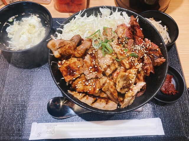 難波的午餐 本來想去的西餐廳臨時休業,所以就來這家作為備選。 在自動售票機購買食券,坐下來就看到這樣的POP海報。 我點了飯大盛、醬汁普通。 カルビ丼 980日圓。 一半是...查看詳情