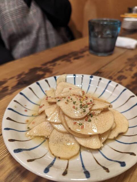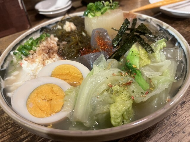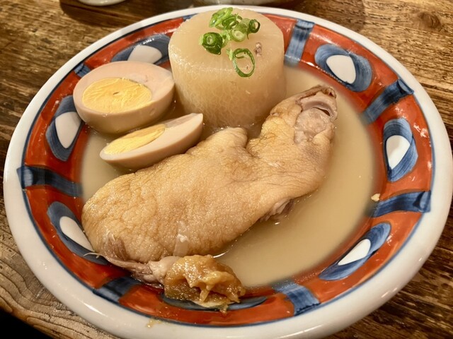 這裡的關東煮真是太棒了。最重要的是湯底的味道非常濃郁。絕對不是濃烈的口味,讓我想起了京風關東煮。另外,最後的豚骨麵也非常美味。我個人喜歡九州風的濃郁口味,但這裡的清淡湯底也非常出色。苦瓜炒蛋也有提供,...