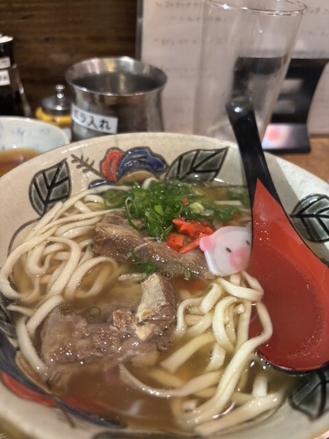 雖然忘了拍照,只拍了ソーキそば,但因為是早上的時候,店裡相當空曠,