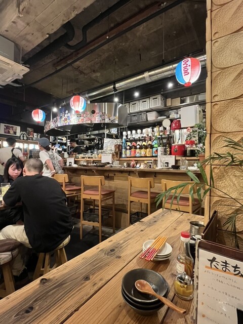 在晚上9點過後尋找開店的地方時,發現了這家店,於是進來了。它位於近鐵日本橋站南側,步行可達的公寓一樓。店內有吧檯座位和餐桌座位,空間相當寬敞。