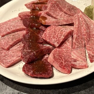 壱岐牛為主的九州產雌牛料理【ミスジ】【イチボ】等多種美味可供品嚐的店鋪。全數提供完全個室。若在博多車站附近想吃燒肉,彩稟是最佳選擇。以赤身肉為主,提供高品質的肉品。招牌的肋眼燒涮和和牛炙燒壽司不容錯過!