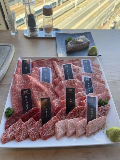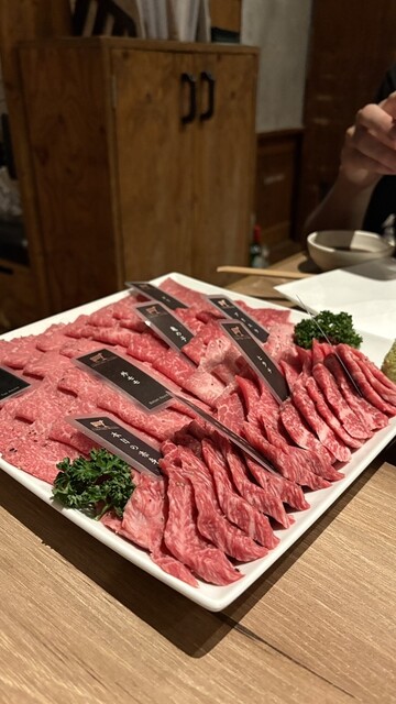 最開始供應的肉拼盤裡還包含了稀有部位,加上這樣的...