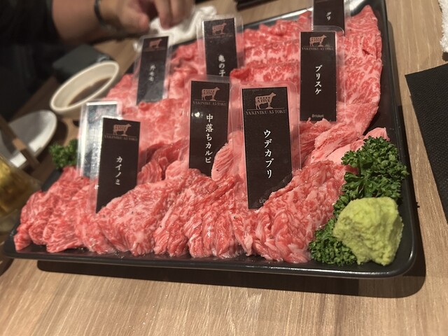 預約了A 5吃到飽90分鐘套餐。首先上來的是各種赤肉和牛排,味道非常美味!