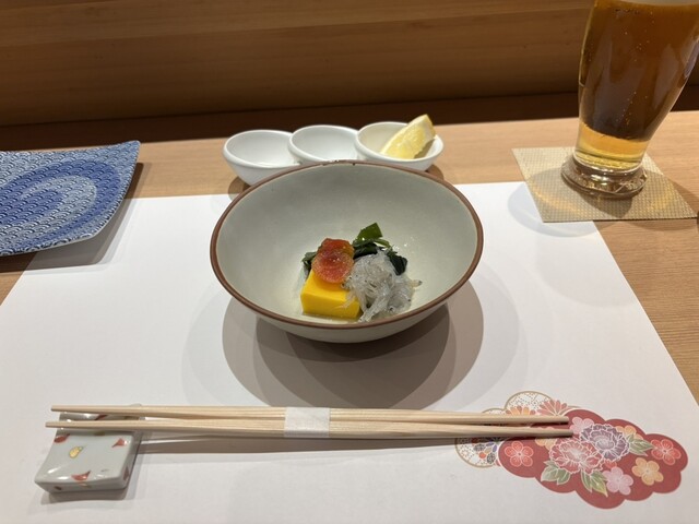 在完全個室中品嚐到無可挑剔的天婦羅和壽司,讓我感到非常滿意。即使是最便宜的套餐也吃不完。這個價格在銀座來說非常合理!我們四個人點了3合酒和一些酸酒。真想再來一次呢~