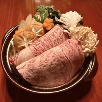 簡約的壽喜燒套餐♪ 瓢箪的壽喜燒使用獨特的厚切黑毛和牛,讓您能直接感受到肉的鮮美! 而且我們選用來自青森的「十六代真っ赤卵」,製作成全蛋的蛋白霜,讓蛋液更容易附著且不易冷卻。 在口中,蛋與和牛交融,令人垂涎欲滴! 敬請品嚐!