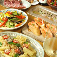 【晚餐】附氣泡酒的暢飲6800日圓套餐■全10種5道菜,冷菜、熱菜、肉類料理、義大利麵也包含在內的最受歡迎計劃■※僅限包場,午餐也可10道