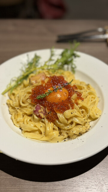 -服務- 氣泡酒 -前菜- 草莓布拉塔起司 草莓鮭魚布魯斯凱塔 ★生火腿與炸餃子 -熱前菜- 黑松露薯條 戈爾根佐拉起司義大利麵球 -義大利麵- ★濃郁生卡邦尼意大利麵 魚子醬 -主菜- ★黑毛和牛烤肉與黑松露 -甜點- 自家製巧克力蛋糕